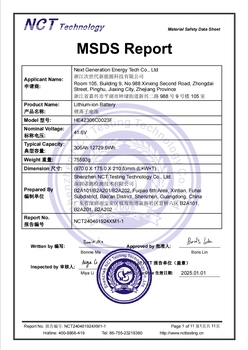 1.能量密度: 258wh/kg; 2.循环寿命: 1000(80% SOH) 3.连续充电/放电速率: 1C/3C